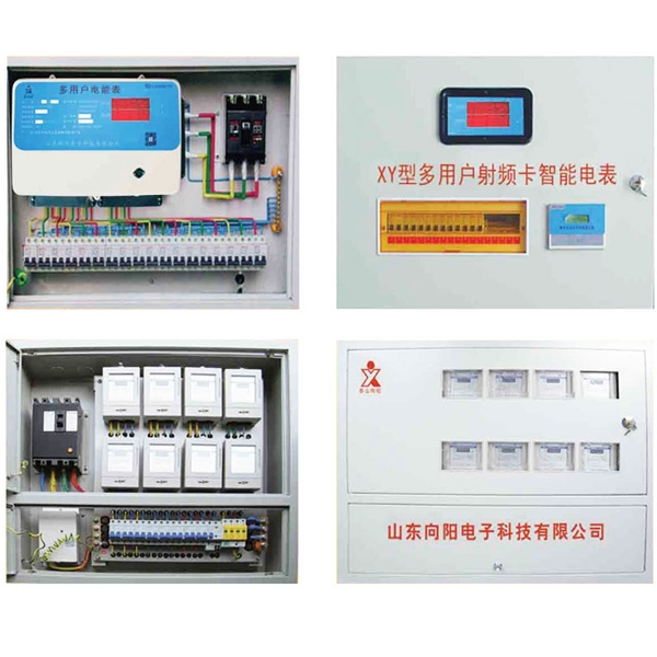 多用户组合式配电箱内置多用户组台式电能表、总进线开关、分户开关、零线和地线端子排等,分悬挂式和嵌墙式两种,其体积因多用户电能表的户数和开关种类而变。